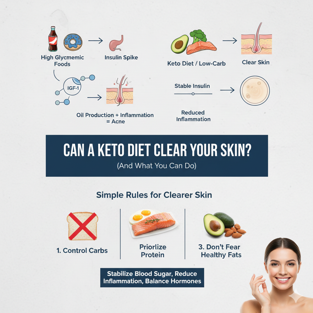 If acne plagues you despite skincare routines, consider keto or low-carb eating. By stabilizing blood sugar, reducing inflammation, and balancing hormones, this approach might be the missing piece for clearer, healthier skin.